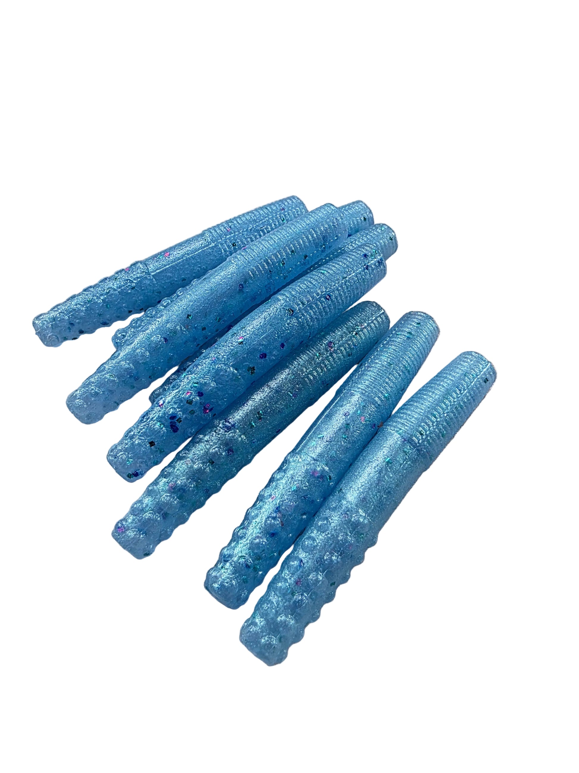 Este paquete de 8 lombrices Midwest Finesse Ned Worms de 2,7 pulgadas presenta un exclusivo patrón de color Blue Shad, diseñado específicamente para aparejos NED. Su perfil compacto y su realista imitación de cangrejo las hacen ideales para la pesca finesse, ofreciendo la acción sutil y la presentación natural que exigen los pescadores de lubina modernos.
